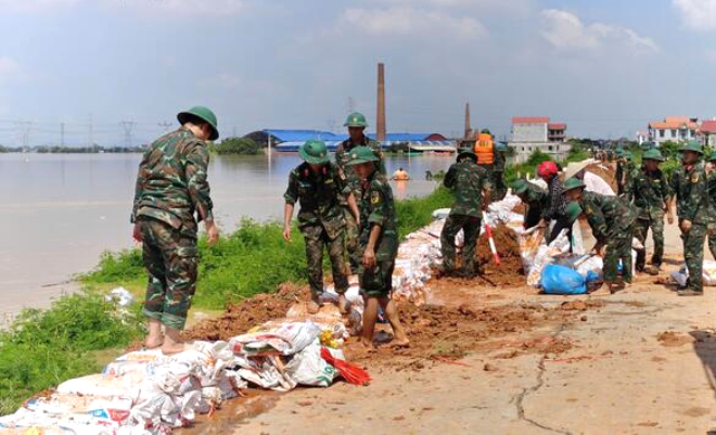 Trả lời VTC News, Trung tá Bùi Anh Minh, Chính ủy Trung đoàn 2, Sư đoàn 3, Quân khu 1 (Bộ Quốc phòng) cho biết, mực nước sông Cầu dâng cao, cán bộ chiến sĩ của Trung đoàn 2 nhanh chóng cơ động ra khỏi đơn vị, xuống hiện trường đê xã Hợp Thịnh (Bắc Ninh) phối hợp với Nhân dân gia cố đê điều, đắp chống tràn nước và khắc phục một số điểm trọng yếu.