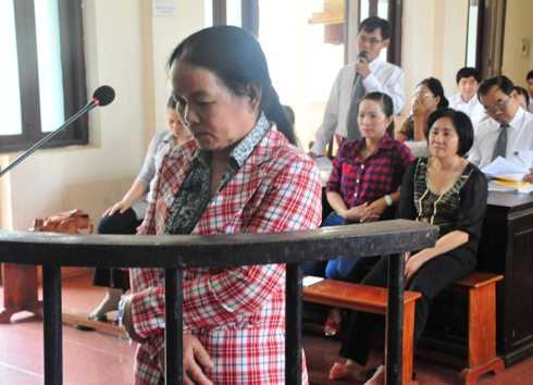 | Bị cáo Nguyễn Thị Sạnh lãnh mức án 17 năm tù về tội "Lừa đảo chiếm đoạt tài sản" tại phiên sơ thẩm ngày 2/4/2014 |