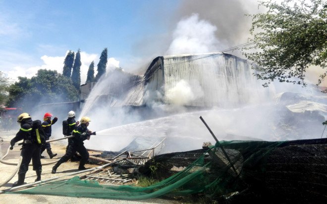 Cảnh sát PCCC Công an tỉnh Ninh Thuận đã điều động 5 xe chữa cháy cùng hàng chục chiến sỹ đến hiện trường. Việc dập lửa khó khăn bởi nhà máy rộng đến gần 1.000 m2.