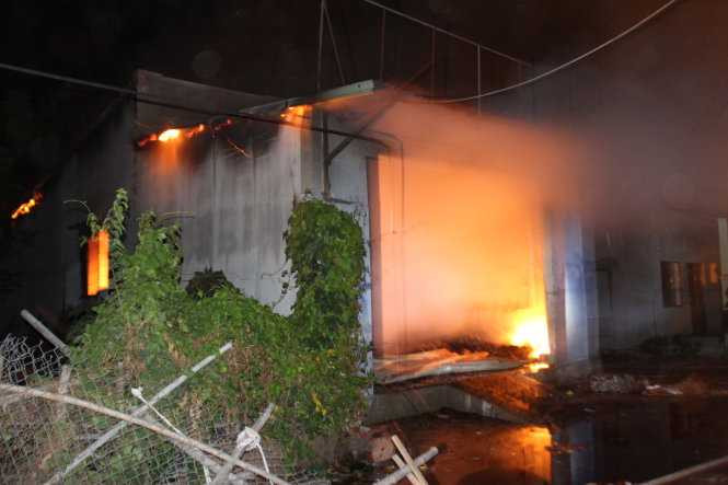 | Lửa bốc cháy dữ dội bên trong nhà kho. Rất may kho chứa hàng không nằm chung vách với nhà nào - VĂN THẢO |