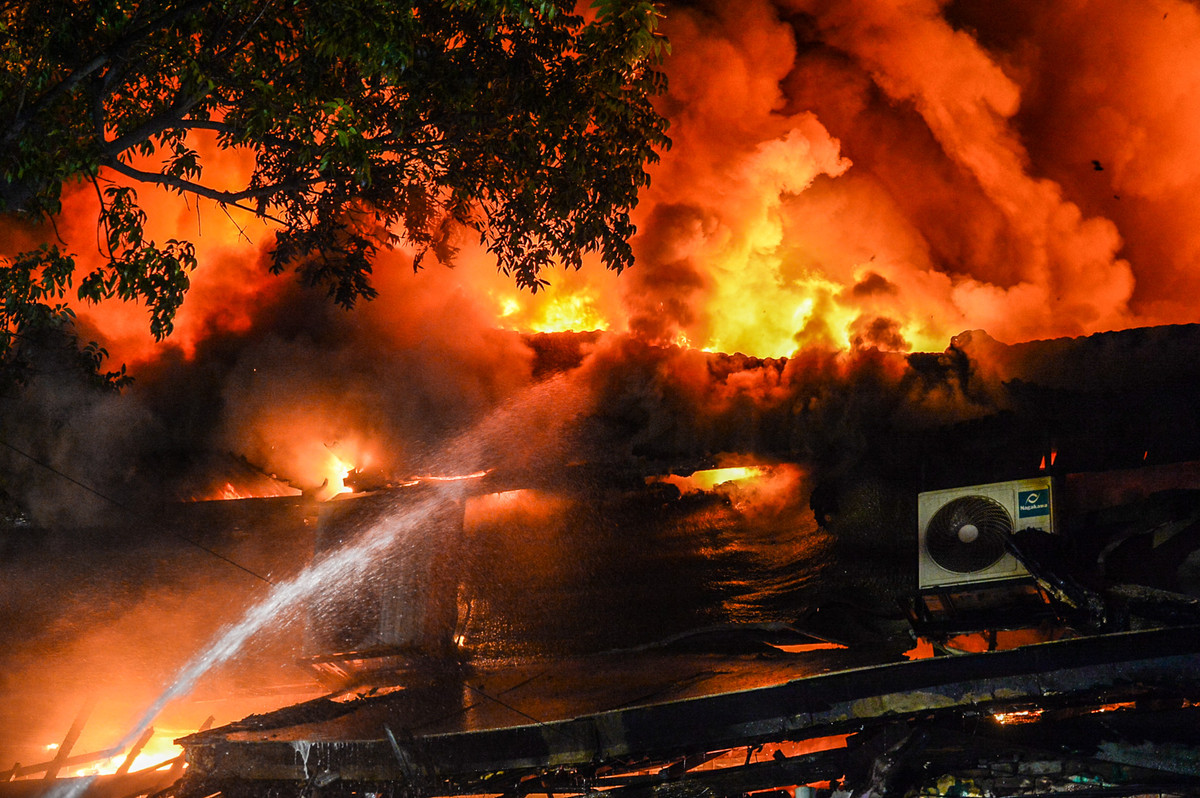 Ngọn lửa đã nhanh chóng bùng phát và tạo ra cột khói đen dày đặc, bao phủ cả góc trời.