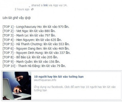 Gần đây xuất hiện những trò lừa đảo trên Facebook như: Tặng quà miễn phí, thay đổi giao diện Facebook,... Với hơn 30 triệu người dùng tại Việt Nam, Facebook mặc nhiên trở thành miếng mồi cực kỳ béo bở cho tin tặc.