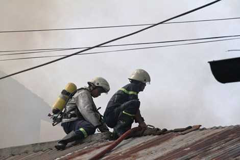 | Lực lượng PCCC TP.HCM đã nhanh chóng có mặt tại hiện trường đám cháy. |