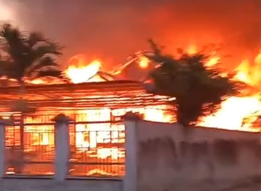 Lửa bao trùm 3 căn nhà sàn. (Clip do người dân cung cấp)