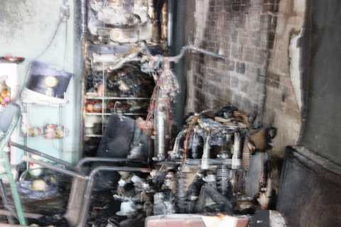 Ghi nhận tại hiện trường tầng trệt của căn nhà có nhiều đồ đạc, vật dụng, xe máy bị thiêu rụi hoàn toàn. Rất may vụ hỏa hoạn không gây thiệt hại về người. Nguyên nhân điều tra ban đầu có thể do chập điện.