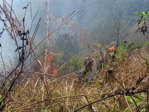 Vì vậy, song song với chữa cháy rừng, các chiến sỹ của Phòng đã cố gắng dập lửa để bảo vệ khu vực 2 trạm thu phát sóng.