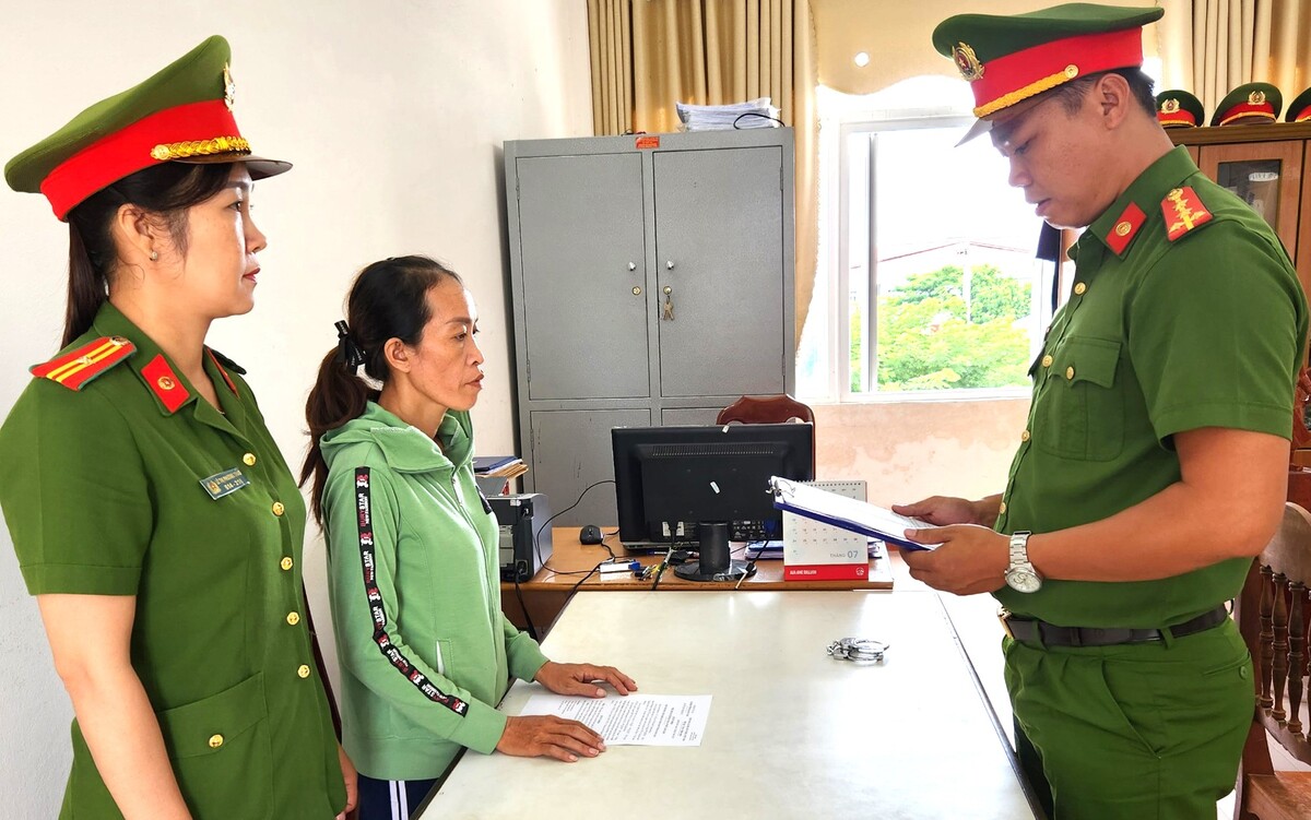 Lực lượng chức năng đọc quyết định khởi tố Đỗ Thị Thu Sương. (Ảnh: C.A)