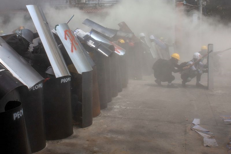 Lực lượng an ninh Myanmar dùng hơi cay, lựu đạn gây choáng để giải tán biểu tình. (Ảnh: Reuters)