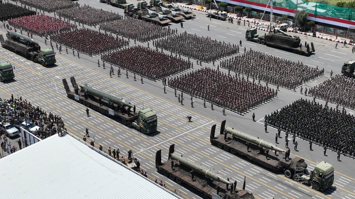 Tên lửa đạn đạo tầm xa được Houthi giới thiệu trong lễ duyệt binh kỷ niệm ngày tiếp quản thủ đô Sanaa. (Ảnh: iswnews)