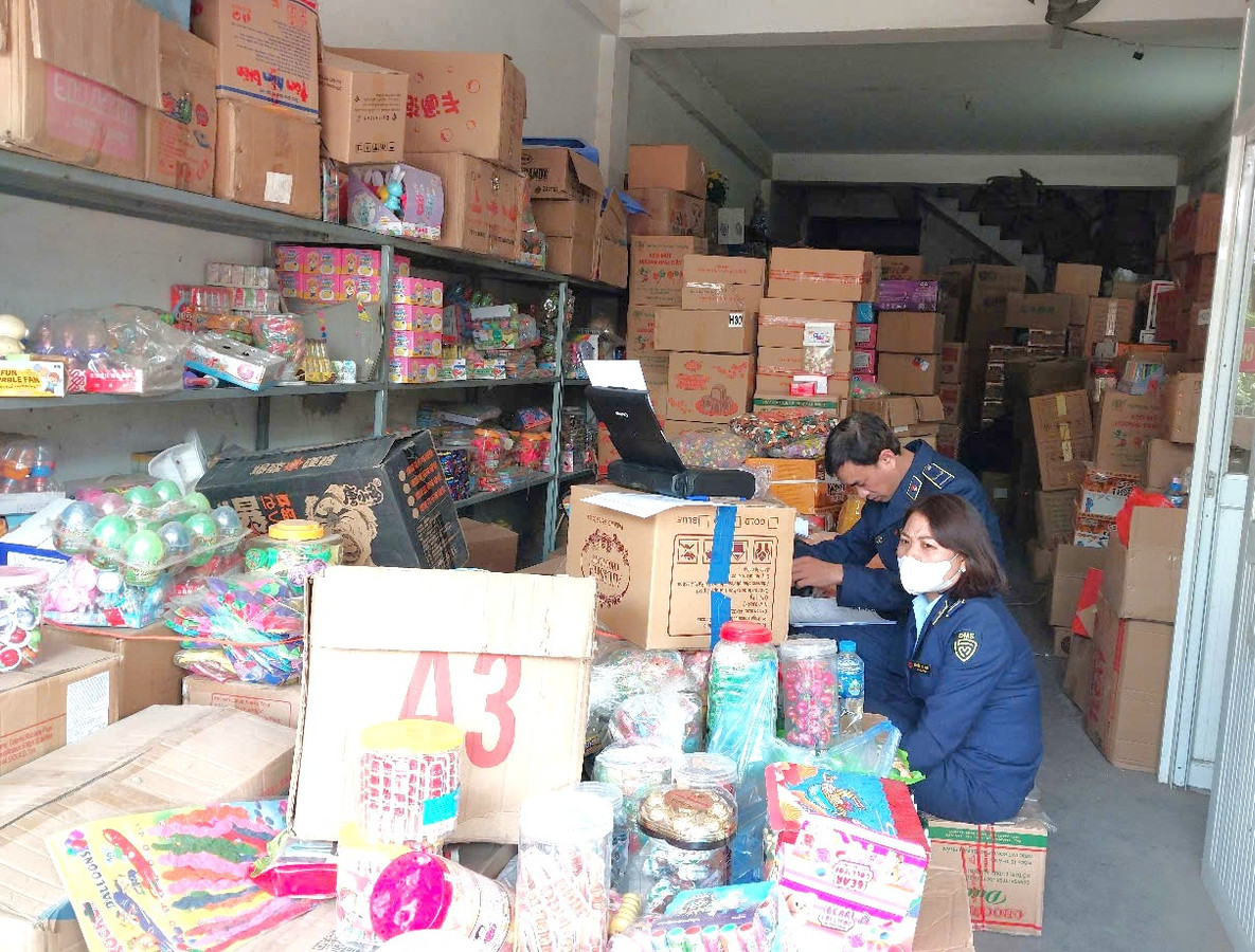 Cùng ngày, lực lượng chức năng kiểm tra Địa điểm kinh doanh hàng hóa tại số nhà 171, thôn Chùa Tổng, xã La Phù, huyện Hoài Đức (Hà Nội). Qua kiểm tra phát hiện cửa hàng bày bán nhiều hàng hóa do nước ngoài sản xuất nhưng không có hóa đơn chứng từ, với số lượng gần 60 thùng bánh kẹo các loại.
