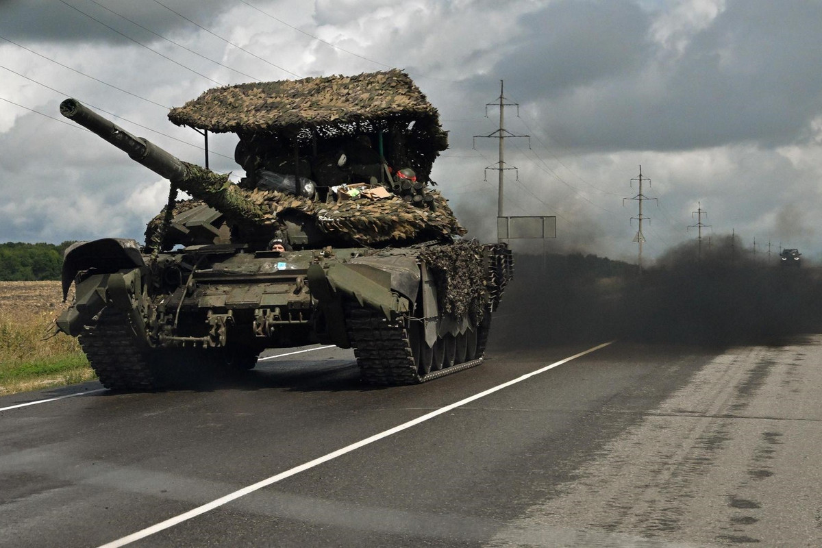 Xe tăng của quân đội Nga di chuyển trên một tuyến cao tốc ở Kursk hôm 8/8. (Ảnh: Kommersant)