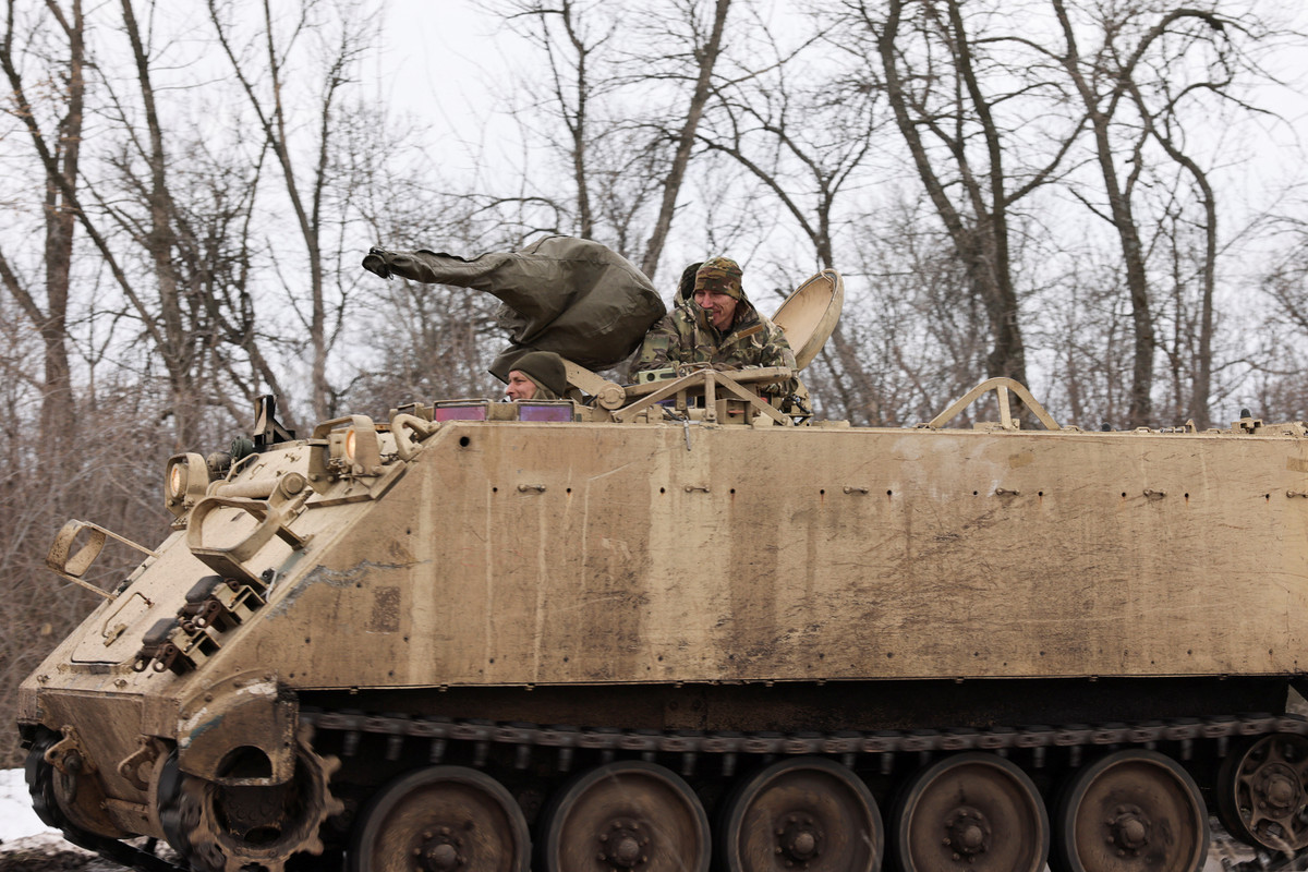 Binh sĩ Ukraine với xe bọc thép M113 ở khu vực phía đông Donetsk. (Ảnh: Reuters)