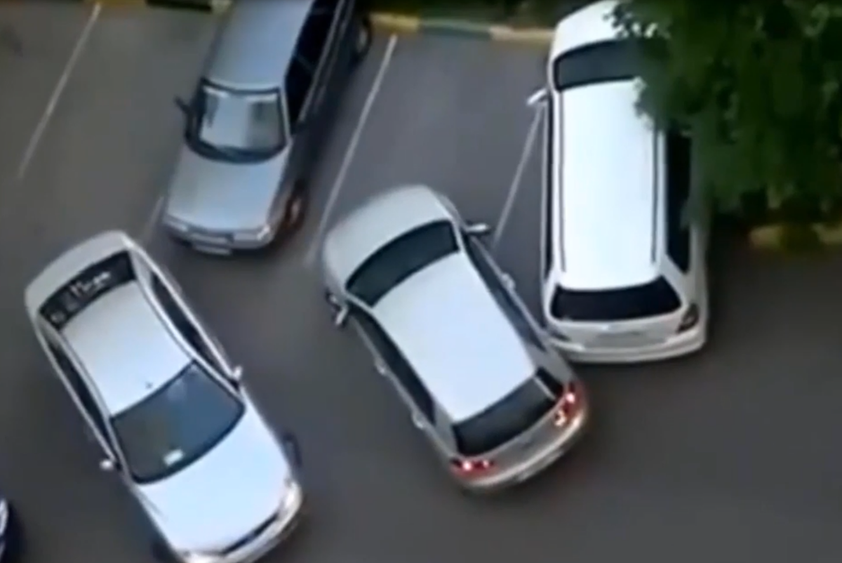 Sau nhiều lần cố lùi xe vào chỗ đỗ không thành công, nữ tài xế quyết định bỏ cuộc, vứt xe ngay giữa đường.