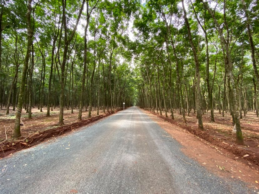 Tuyến đường qua lô cao su đang được thi công.