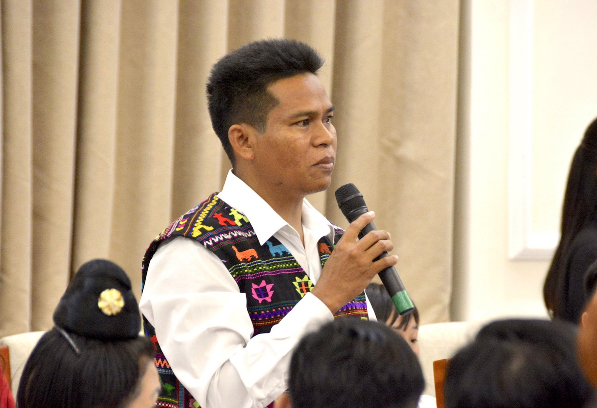 Thầy K'Dĩnh phát biểu trong buổi gặp mặt lãnh đạo Bộ GD&ĐT.