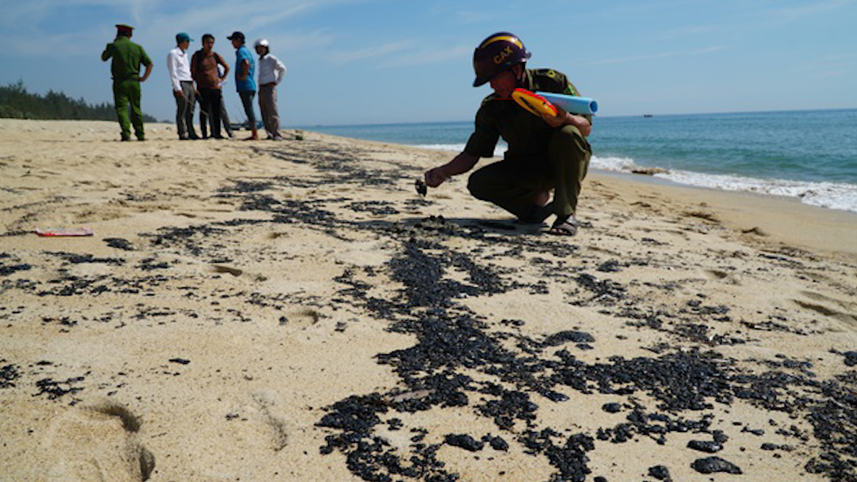 Chất thải màu đen tràn vào bờ biển Quảng Ngãi