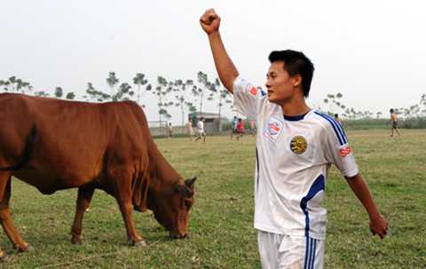 Chắc thế anh ạ! Thêm chi tiết, phân bò rải như những cọc tiêu trên sân, vô tình tạo nên bài tập luyện kỹ năng rê dắt bóng qua cọc tiêu vào tự chuyện nữa thì đúng là… phải bái phục thật!