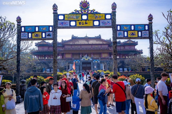 Lượng du khách đến Huế tham quan, du lịch dịp Tết Nguyên đán tăng đột biến. (Ảnh: Lê Hoàng)