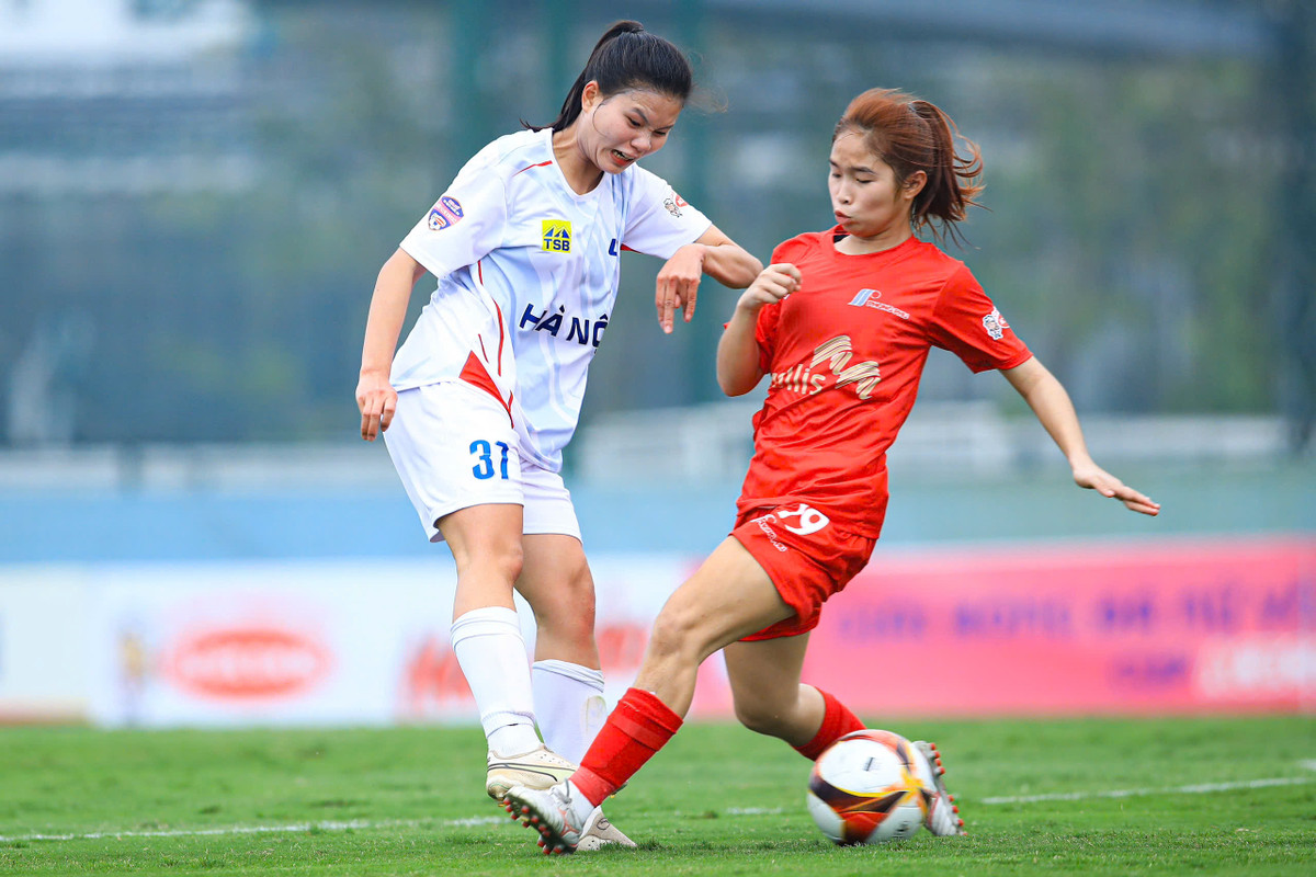 Phút 53, bàn thắng mở tỉ số đến với Phong Phú Hà Nam theo cách bất ngờ. Nhận đường chuyền của đồng đội, Bùi Thị Hồng Nhung tung cú sút xa rất đẹp mắt từ ngoài vòng cấm và không có cơ hội để thủ thành Ngọc Ánh bên phía Hà Nội cản phá.