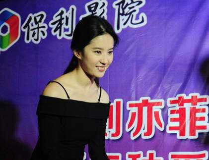 Theo Ifeng, mới đây, Lưu Diệc Phi đã có mặt tại Hợp Phì tham dự sự kiện quảng bá phim Tình yêu thứ ba. Cô mặc bộ váy đen đơn giản.