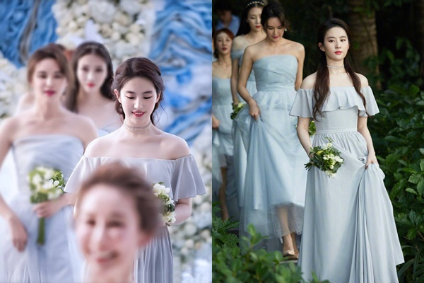 Một lần nữa, Lưu Diệc Phi lại nổi bật giữa dàn phù dâu. (Ảnh: Weibo)