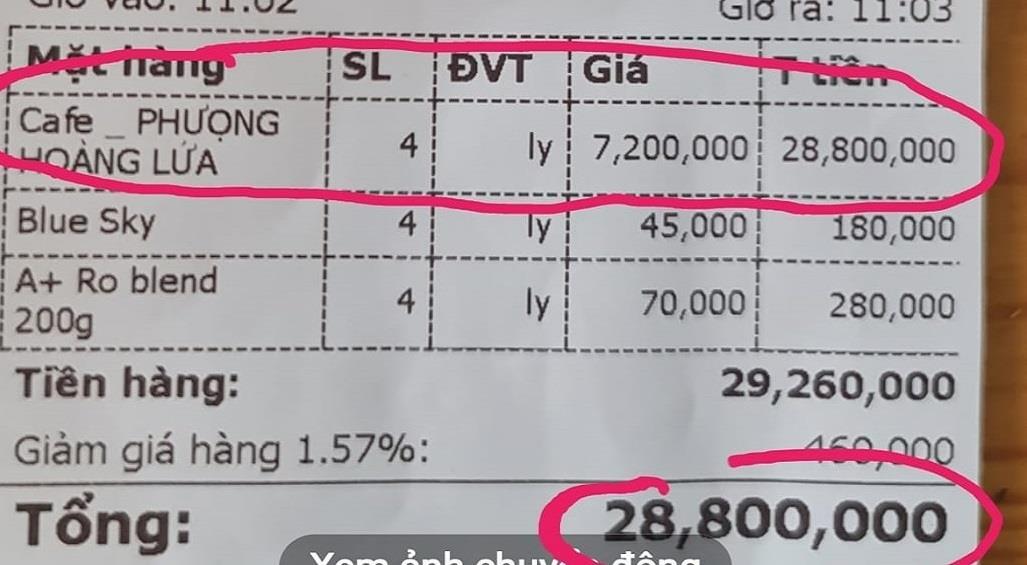 Liên quan đến hóa đơn nói trên, chủ quán Photo And Bike Coffee (đường Trần Phú, TP Bảo Lộc, tỉnh Lâm Đồng) xác nhận hóa đơn bán hàng trên là đúng và người thưởng thức là 4 vị khách tới từ miền Nam, hôm 20/4.