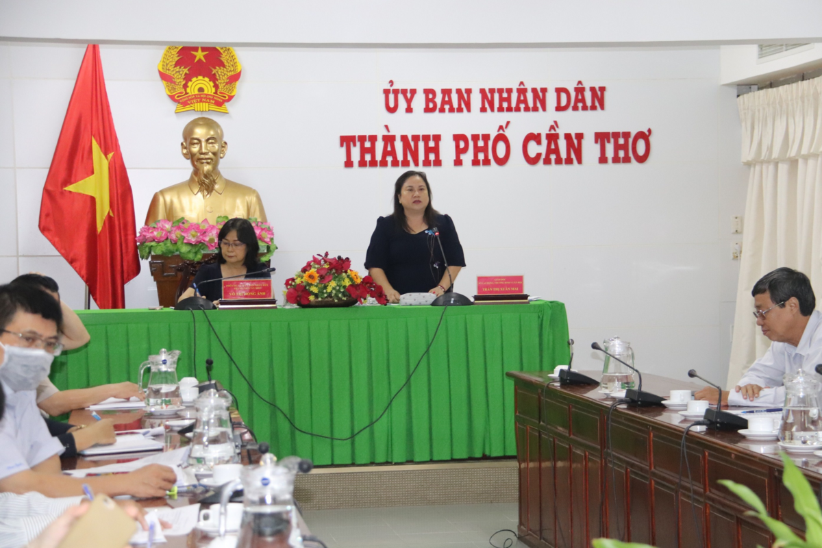 Bà Trần Thị Xuân Mai - Giám đốc Sở LĐTB&XH TP Cần Thơ phát biểu tại cuộc họp.