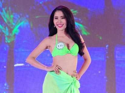 | Nam Em trình diễn áo tắm ở cuộc thi Hoa khôi đồng bằng sông Cửu Long. |
