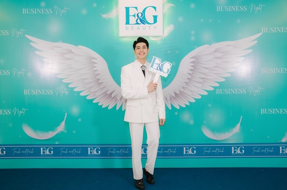 Ca sĩ Noo Phước Thịnh rạng rỡ trong buổi ra mắt thương hiệu mỹ phẩm và dược mỹ phẩm E&G Beauty.