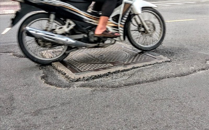 Ngoài ra, mưa lớn làm nước dâng cao, tạo áp lực lớn lên nắp cống khiến cho nắp bị xê dịch hoặc bật ngược lên. Nếu không chú ý, người lái rất dễ bị sụp hố hoặc mất lái, gây nguy hiểm nghiêm trọng.