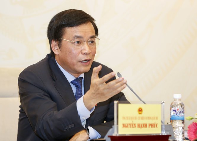 Tại buổi họp báo chiều 19/5, Tổng thư ký Quốc hội Nguyễn Hạnh Phúc trả lời câu hỏi của phóng viên về sự chậm trễ của dự án Luật Biểu tình.