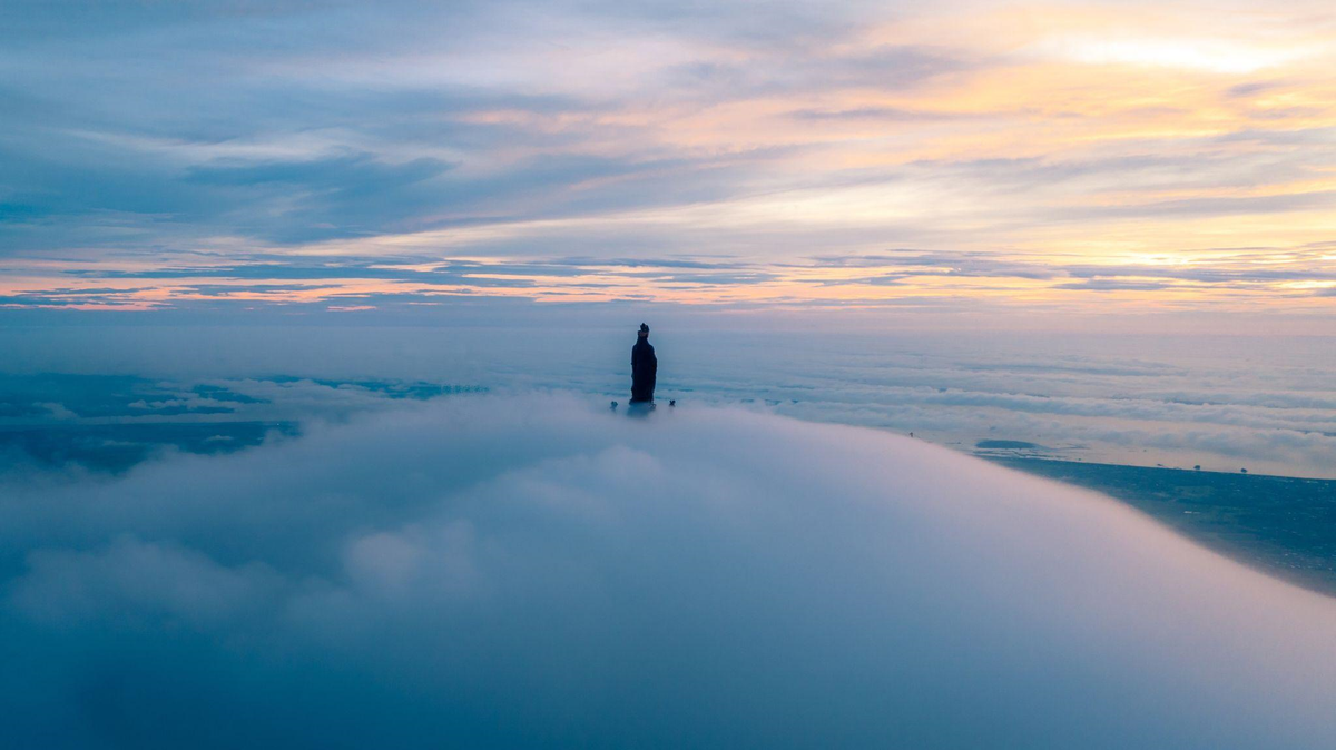 Đỉnh núi Bà Đen bồng bềnh trong mây.