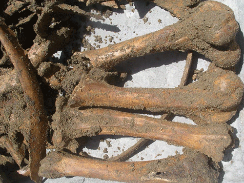 | Động vật lạ có xương ống chân rất dài và nặng. (Ảnh: Bình Định Online) |