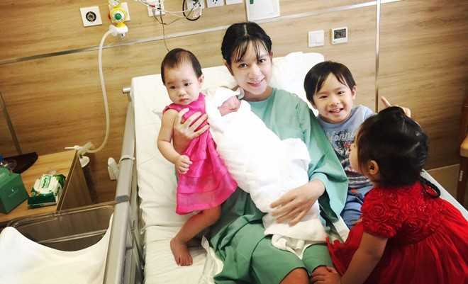 Minh Hà chia sẻ về lần vượt cạn thứ tư: “Ba lần trước tôi mang bầu 38 đến 40 tuần là sinh, nhưng lần này tôi sinh trước 2 tuần và sinh chậm hơn ba lần trước. Khi có dấu hiệu chuyển dạ vợ chồng tôi vội thu xếp nhập viện từ 6h sáng và đến 18h cùng ngày tôi mới sinh”. |