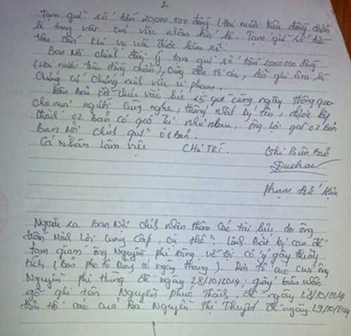 Khoảng 30 phút sau khi điện thoại, KSV Nguyễn Thị Minh nhờ chồng là ông Trần Công An đem 20 triệu đồng xuống tận nhà ông Lợi, đưa cho ông Lợi. Khi đưa, ông An viết “Giấy giao nhận tiền mặt”, ghi rõ: Ông An giao cho ông Lợi số tiền 20.000.000 đồng tiền ông Hậu trả lại cho ông Hùng xã Cư Kuin (lần 1 đã trả 20.000.000 đ tại công viên nước).