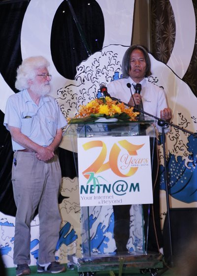 Ông Trần Bá Thái và ông Rob Hurle phát biểu tại lễ kỷ niệm 20 năm thành lập Công ty cổ phần NetNam.