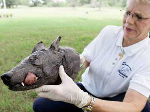 | Phylis Canion và cái đầu quái thú mà bà cho là chupacabra. |