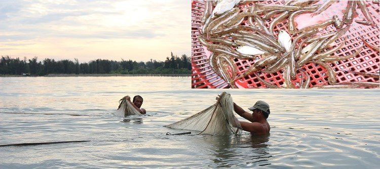 Loài cá thệ (nhỏ tròn, thân dài) là loài cá tiến vua ngon nức tiếng vùng đầm phá Tam Giang. (Ảnh: N.V)