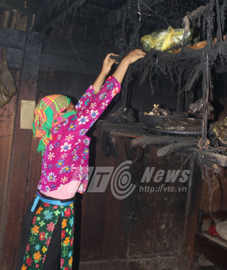Hỏi chuyện về chiếc chân khô của chồng, chị Sùng Thị Dính bảo đúng là có cái chân khô của chồng treo trên gác bếp, nhưng phải hỏi ý kiến chồng thì mới lấy xuống xem được.