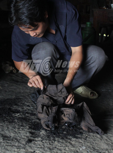 | Chị Dính lấy chân sấy trên gác bếp xuống cho PV xem |