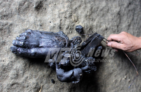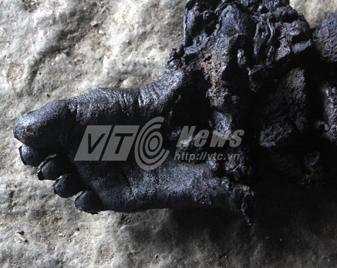 Rõ mồn một bàn chân người nguyên vẹn cả 5 ngón, với móng chân đầy đủ. Phần thịt ở cổ chân, bắp chân te tua, những sợi cơ rách tướp héo quắt. Hai khúc xương lòi ra bám bồ hóng đen sì như thanh sắt. Bàn chân đã khô quắt lại, lộ ra những sợi cơ vằn vện.