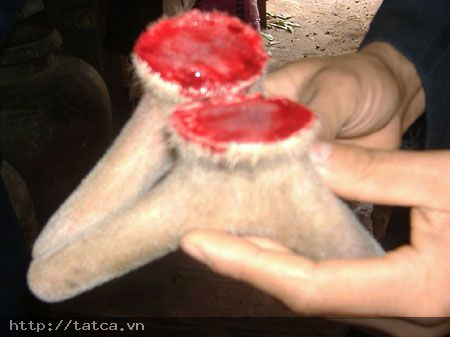 Còn đang choáng trước cảnh khách du lịch người Việt - mà chủ yếu là các bà nô nức đến chợ Cây Tre tậu "thần dược" luyện nội công thì khi đến chợ Chba Om Pau ở quận ngoại thành Miêng Chay - cách trung tâm thủ đô Phnôm Pênh khoảng 7km theo hướng dẫn của một số "tín đồ" tóc dài của hội chứng tráng dương cường âm, chúng tôi xám hồn trước ma trận cao đơn hoàn tán và đặc biệt ấn tượng trước hình ảnh một số người đàn ông bày trên những tấm bạt xương cốt, bào thai của các loại thú hoang.