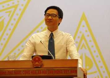 | Bộ trưởng Vũ Đức Đam tại một buổi họp báo Chính phủ (ảnh Quang Trung) |