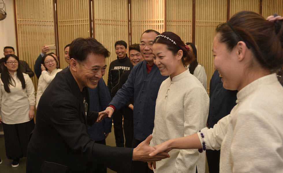 Tài tử gặp gỡ các môn sinh tại buổi khai trương võ đường Thái Cực.