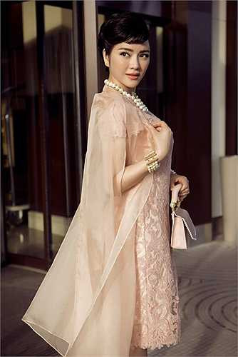 Với kiểu dáng cổ điển, kín đáo, chiếc đầm Lý Nhã Kỳ diện trên thảm đỏ làm nổi bật vóc dáng thon thả, nữ tính.