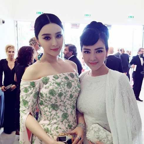 | Lý Nhã Kỳ chụp ảnh cùng ngôi sao Trung Quốc Phạm Băng Băng khi tham dự LHP Cannes 2015 |