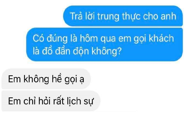 Đã gọi khách hàng là "đồ đần độn", lại còn lý sự cùn thế này, bảo sao sếp chẳng tức điên lên.