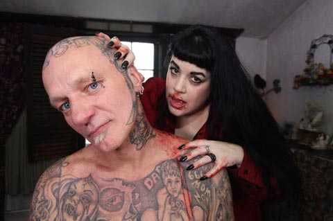 | “Ma cà rồng” Julia Caples cùng với Wesley Hendricks, một người tình nguyện “hiến máu” cho cô |