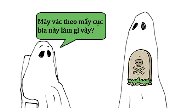 Nói xong rồi hớt hải chạy vô nghĩa địa, một lúc lâu sau nó mới quay trở ra vác theo hai tấm bia mộ.