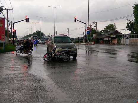 Khi qua ngã tư Giếng Nước (giao lộ giữa quốc lộ 22 - Bà Triệu - Trần Văn Mười) thì tông trúng xe máy mang biển số 59Y1… do chị Loan (30 tuổi) điều khiển chở theo mẹ chồng 75 tuổi và xe máy mang biển số 63M1… do hai nữ sinh điều khiển lưu thông hướng ngược lại đang rẽ trái vào đường Trần Văn Mười.